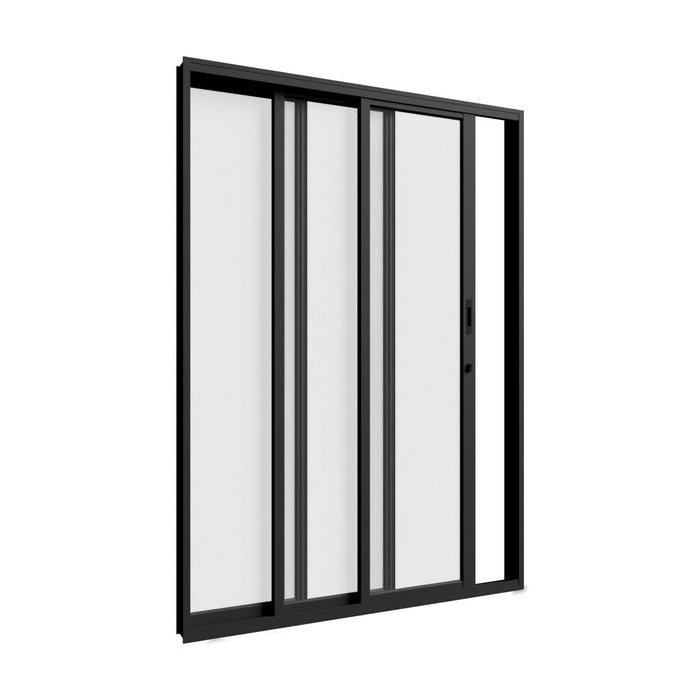 Porta Aluminio Preto De Correr 3 Folhas Com Vidro Temperado:Direito/2000(L) X 2100(A) X 105 preto