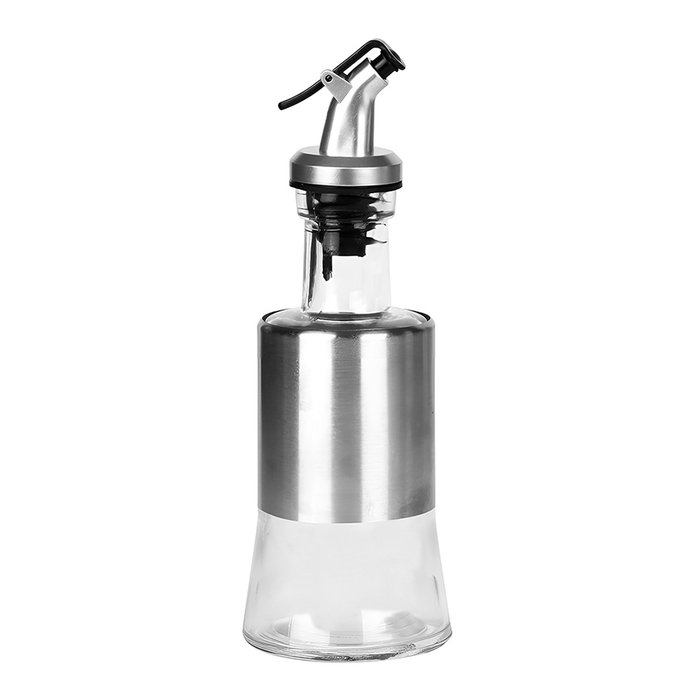 Porta Azeite Óleo e Vinagre 200ml Galheteiro Vidro Aço Inox com Tampa Anti Vazamento incolor
