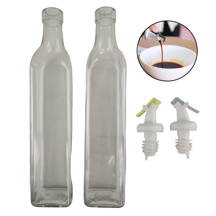 Porta Azeite Vinagre 2 Garrafas Bico Dosador Molho Condimento Oleo Ralos e Torneiras BSL3349
