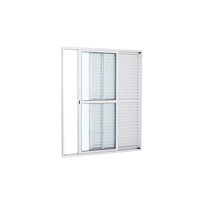 Porta balcão de correr de aluminio branco 3 folhas, sendo 1 folha de vidro , 1 folha palheta de correr, 1 folha palheta fixa