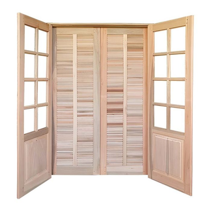 Devido a suas palhetas fechadas esta porta se torna ideal para quartos, onde fica possível o controle de claridade.