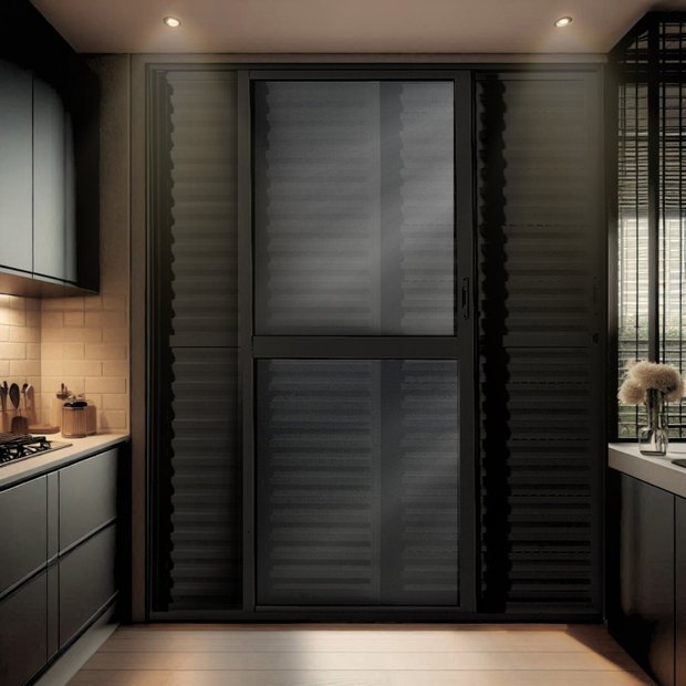 Porta Balção de Aluminio 210x150cm 2 Folhas Moveis e 1 Folha Fixa Preto