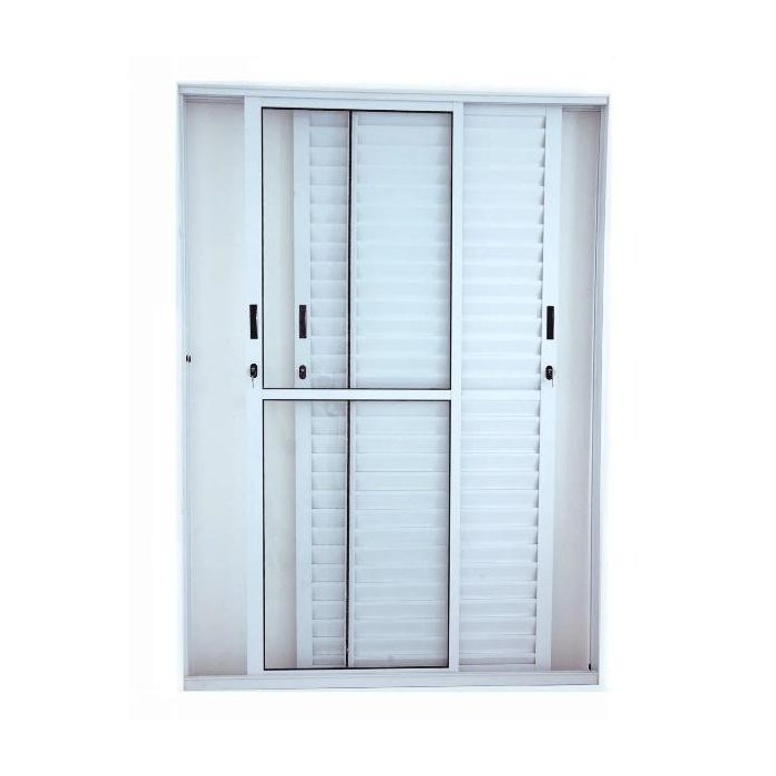 Porta Balcão de Correr de 3 Folhas com Dupla Abertura em Alumínio Branco1,50 (L) x 2,10 (A) x 0,15cm (P) Produto: Porta Balcão de correr Marca: Aluan Material: Aluminio Cor: Branco Medidas: 1,50 cm (L) x 2,10cm (A) x 0,15cm (P) *IMAGEM MERAMENTE ILUSTRATIVA.