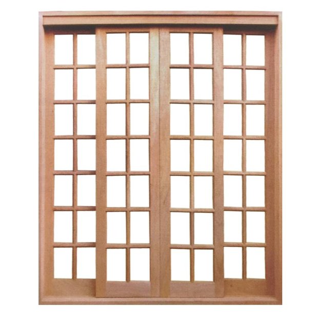 Porta Balcão de Correr de Madeira Cedro Arana Quadriculada Reto Batentes de 14 CM