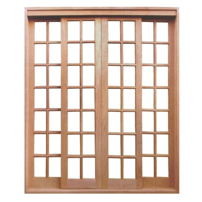 Porta Balcão de Correr de Madeira Cedro Arana Quadriculada Reto Bat.14 Cm- 2.15 (a) X 1.90 (l)