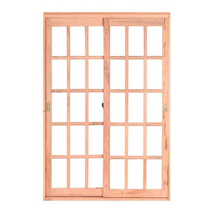 Porta Balcão de Correr de Madeira Eucalipto Quadriculada 2 Folhas Reto Batentes de 12 CM Esel Esquadrias - 2.16 (A) X 1.20 (L)