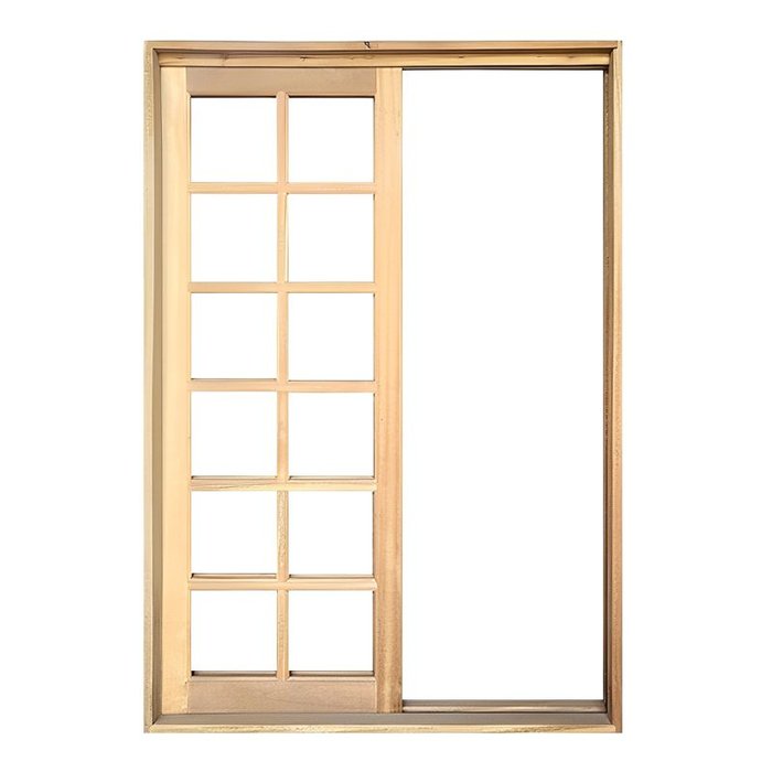 Porta Balcão de Correr de Madeira Itaúba Quadriculada 2 Folhas Reto Batentes de 14 CM