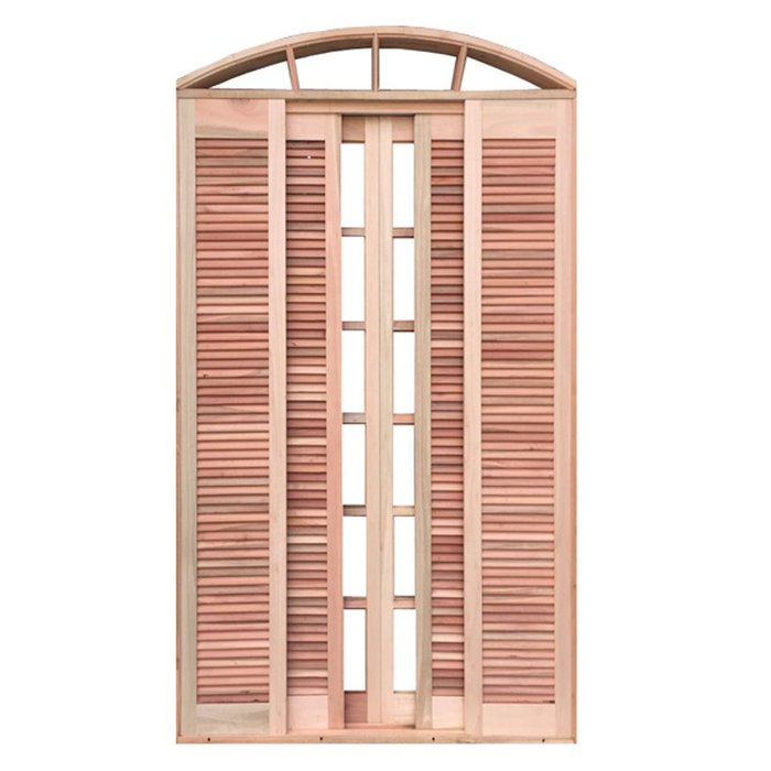 Porta Balcão de Correr de Madeira Padrão Cedro Veneziana em Arco Bat.14 Cm-2.35(a)x1.50(l) Rosa com variações por ser um produto natural