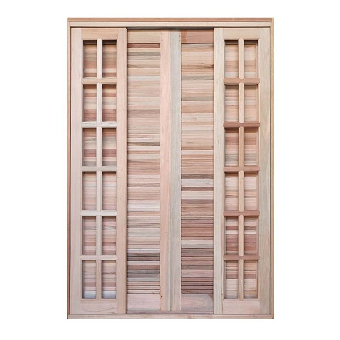 Porta Balcão de Correr de Madeira Padrão Cedro Veneziana Reto Batentes de 14 CM