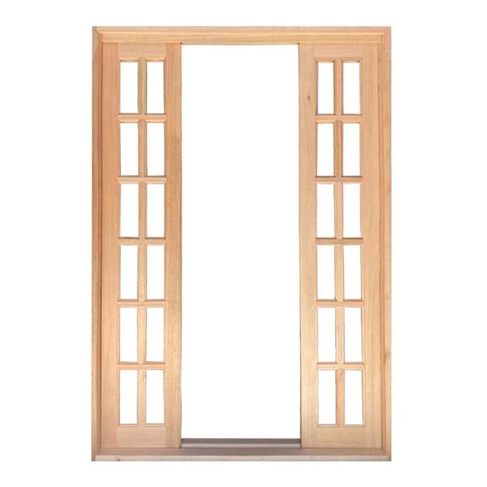 Porta Balcão de Correr de Madeira Padrão Cedro Quadriculado Reto Batentes de 10 CM