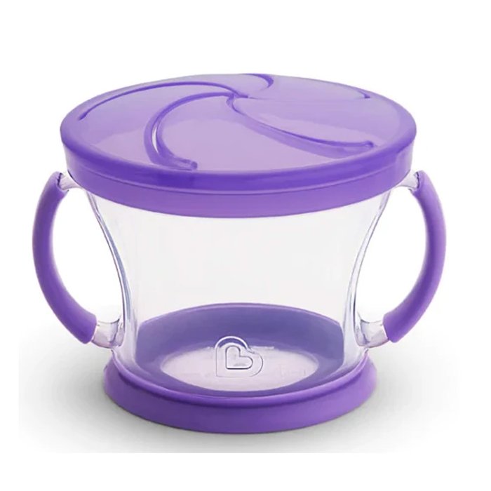Porta biscoitinhos da marca Munchkin, não deixa os cereais caírem, fácil de pegar. Possui abas flexíveis para facilitar o acesso, rachaduras em relevo limpam os dedinhos. A tampa côncava comporta mais cereais. Possui na parte inferior um local especial para escrever o nome da criança. -Para crianças a partir de 12 meses; -Comporta 250 gramas de biscoito; -Sem BPA.