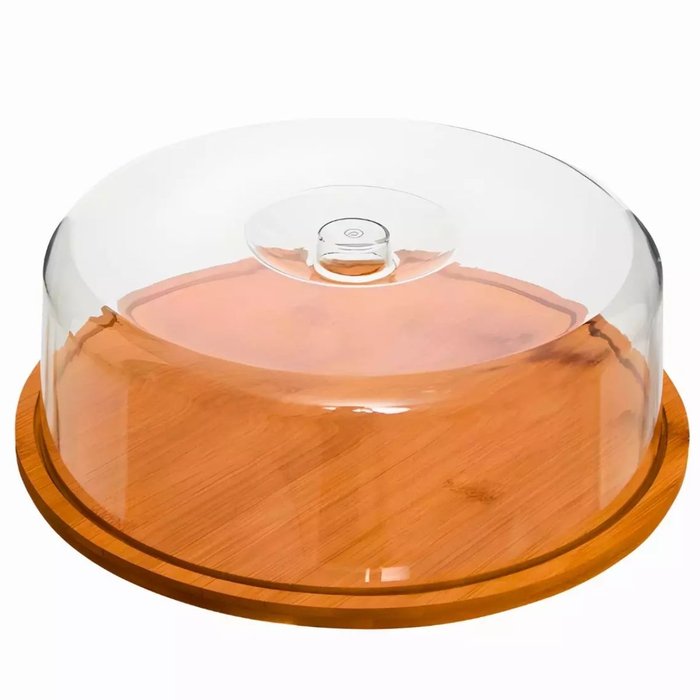 Porta Bolo Boleira Bambu Tampa Acrílico Redonda Dolce Home