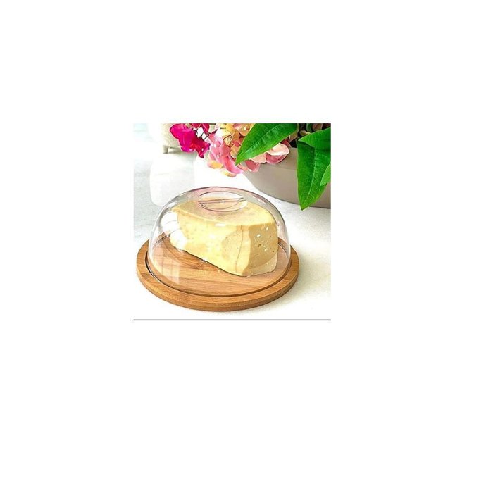 Porta Bolo, Queijo, Pães C/Tampa Acrílica Base Bambu -Wincy