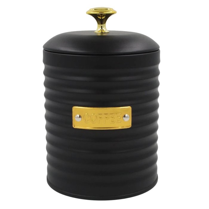 Porta Café de Metal com Tampa Friso Preto15,5cm Preto