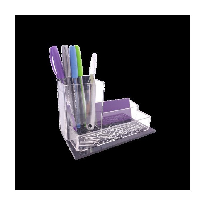 Porta Caneta Lápis Cartão Clipes 3 Divisões Acrílico Preto