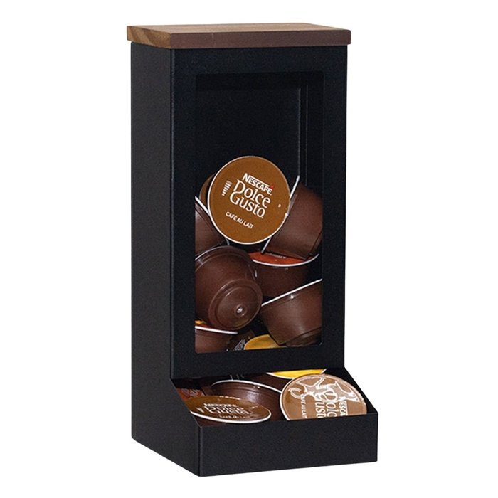 Porta Cápsulas de Café Torre de Aço Preto com Tampa Madeira 12x27cm - Wp Connect