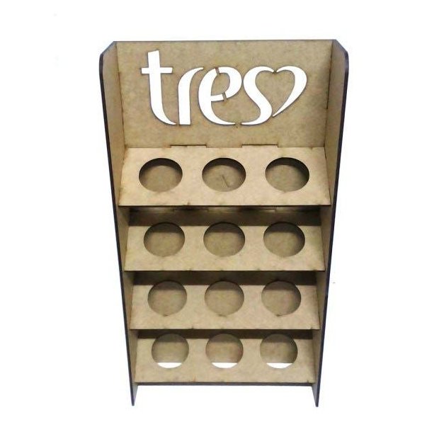 Espessura: 3MMLargura: 19cmComprimento: 7cmAltura: 35cmPeso: 0,330gCor: Crú - Sem pintarCorte a laserPara 12 cápsulas 3 corações