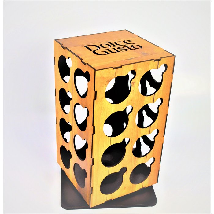 Porta Capsulas Dolce Giratorio Torre 32 Capsulas desenho Make Laser Dolce Gusto Adesivado Madeirado