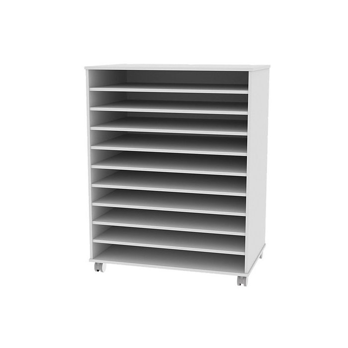 O Armário Porta Cartolina pode ser utilizaos em escolas ou papelarias, fabricado em MDP 15mm com fundo em eucatex 2,5mm, acabamento em fita de borda 0,45mm. Pés com rodizios.