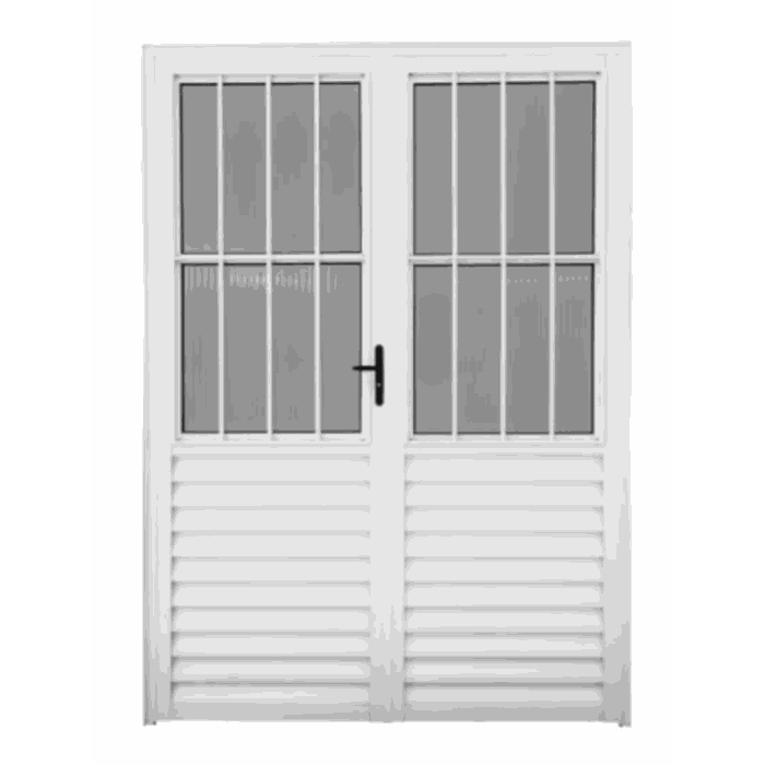 Porta Central Dupla Social Aluminio Branco - Metade Fechada Metade Vidro