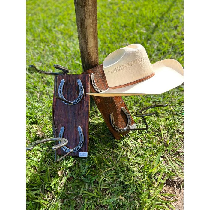 | Itens Inclusos | 1 porta chapéu para 2 chapéus feito com ferraduras e madeira peroba |
