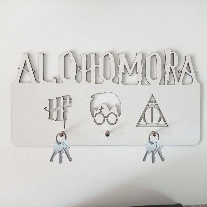 Porta Chave Alohomora Harry Potter Branco em Mdf