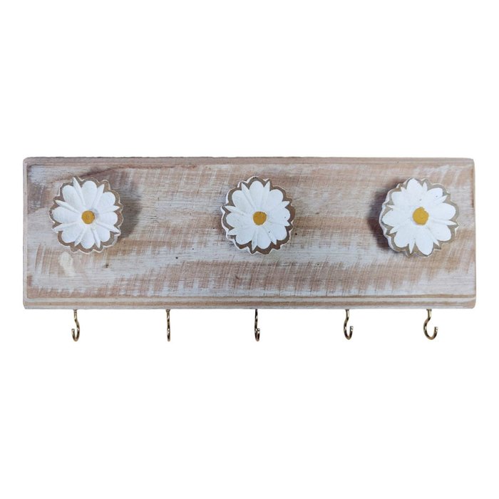 Porta Chaves Artesanal Flores 3d Colorido Estilo Rústico Porta Chaves 5 Ganchos Branco Branco