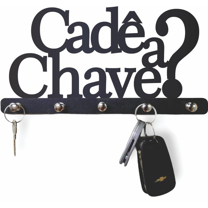 Porta Chaves em MDF com escrito Cadê a Chave, corte feito a laser, em mdf de 3mm com pintura em preto UV