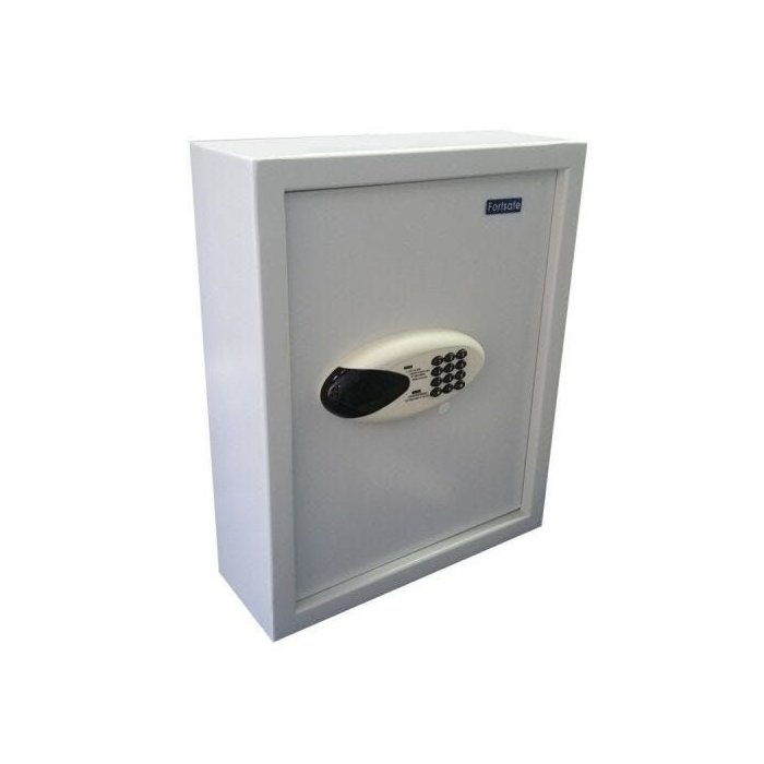 Claviculário Digital Bh50 Especificações: Corpo construído em chapa de aço 2 mm; Segue quatro parafusos e buchas para fixação; 04 (quatro) furos no fundo; Forração na base; Réguas com suportes para os chaveiros; Acompanham 132 chaveiros coloridos, com visor para identificação; Porta constra em chapa de aço 5 mm;uíd Fechadura eletrônica/digital com visor/display; 02 ferrolhos cromados para travamento. Fechadura tetra-chave de emergência; Pintura a pó (epóxi); Cor branca; Medidas Externas: Altura: 50.00 cm Largura: 40.00 cm Profundidade: 15.00 cm Peso líquido 18.800 Kg Peso bruto 20.100 kg Medidas Internas: Altura: 49.00 cm Largura: 39.00 cm Profundidade: 8 cm Cubagem: 15 Litros.
