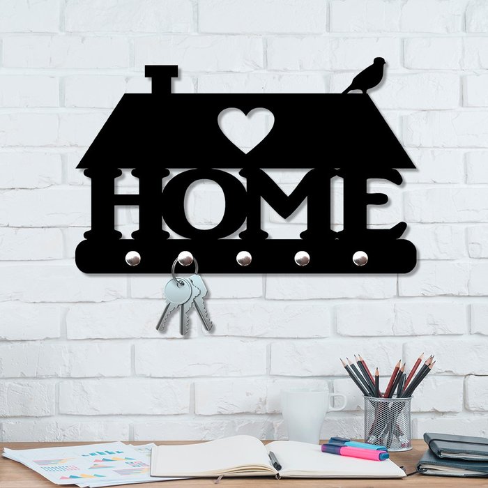 Porta Chaves de Parede 6mm Home Casinha MDF 25x15,8:PRETO