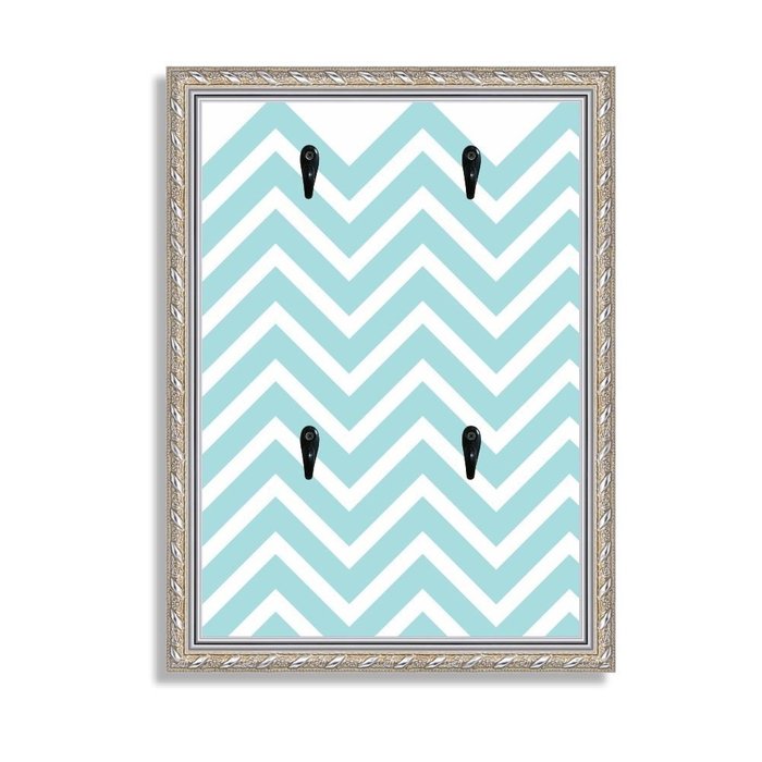 Porta Chaves Decorativo Estampado Luxo Listras Zig Zag Azul e Branco Prata -