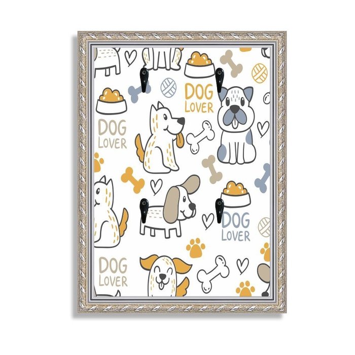 Porta Chaves Decorativo Estampado Luxo Pet Dog Lover Prata -