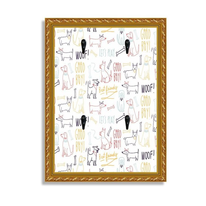 Porta Chaves Decorativo Estampado Luxo Pet Good Boy Cachorro Dourada