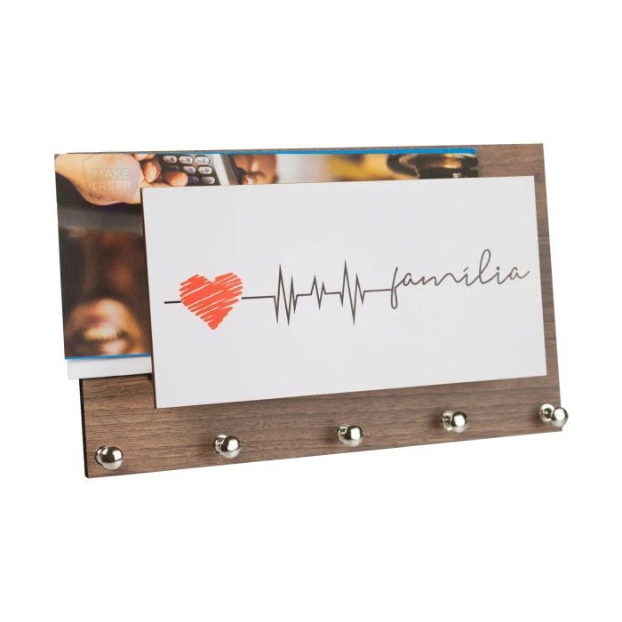 Com o porta chaves e cartas, você organiza até 5 chaveiros, suas correspondências e ainda deixa sua casa com uma decoração exclusiva!