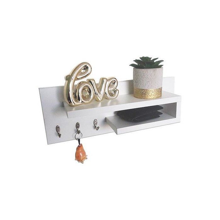 Porta Chaves em Mdf 6 Suportes e Prateleira Carteira Treco