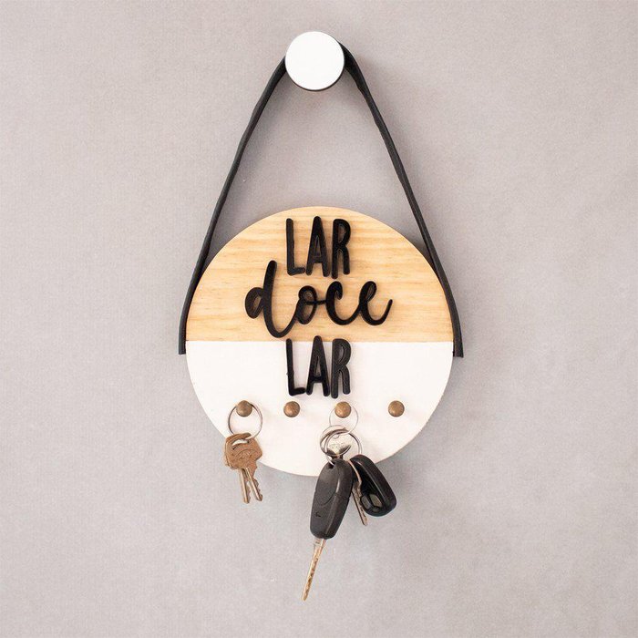 Porta-chaves Em Pinus Branco Lar Doce Lar - 17cm