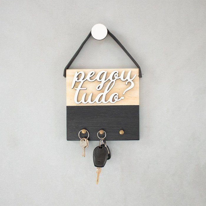 Porta-Chaves em Pinus Preto Pegou Tudo - 17cm -