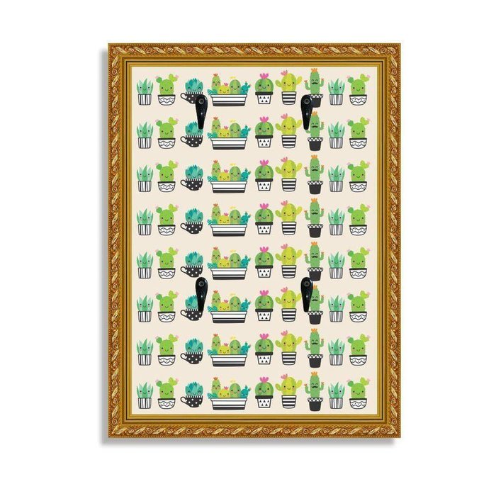 Porta Chaves Decorativos Estampados Luxo Cactos Verdes Fofos Dourada