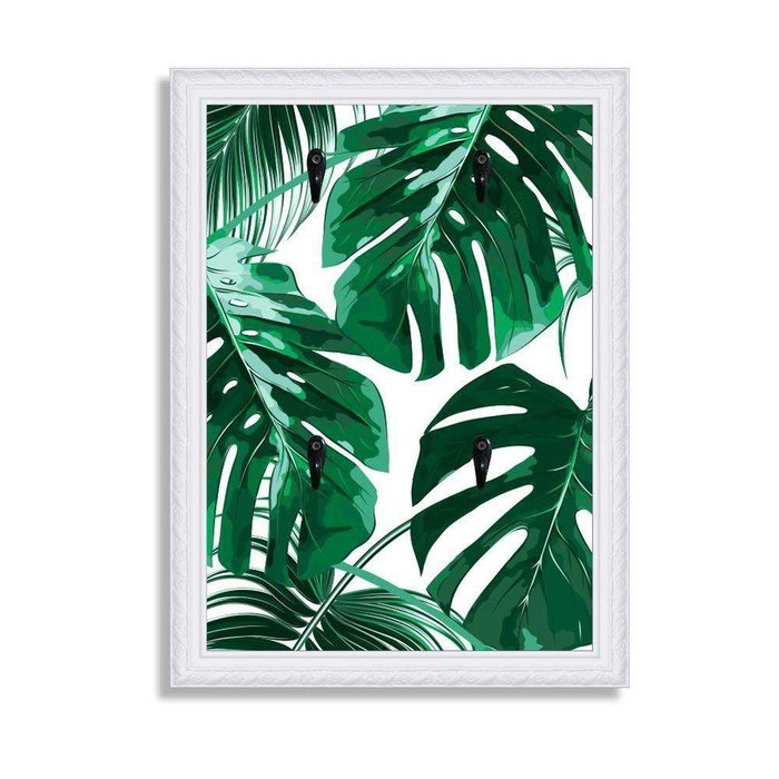 Porta Chaves Decorativos Estampados Luxo Folhas Verdes Branca