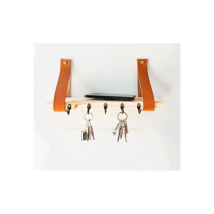 Material: Madeira Natural Pinus, Couro e ganchos.