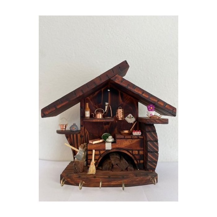 TIPO DE PRODUTO Porta chaves Tema cozinha mineira INFORMAÇÕES DO PRODUTO •5 ganchos pequenos •Altura 29 cm •Largura 9 cm •Profundidade 29 cm •Peso aproximado 0,400 grms •Material: Madeira Maciça •Miniaturas: cobre puro e outros. TEMOS A PRONTA ENTREGA