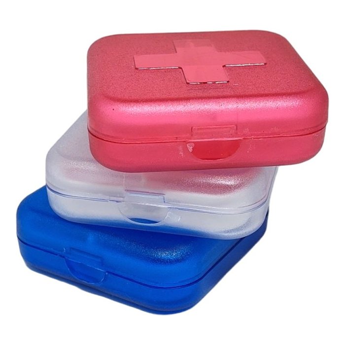 Porta Comprimidos kit 3 caixas coloridas em Plástico Translúcido *** Descrição:
