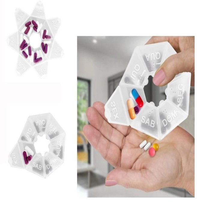 Porta Comprimidos Semanal Suplementos 7 Divisorias Caixa Medicamentos Organizador com Tampa