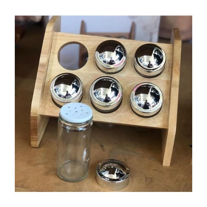 Porta Condimentos 6 Peças Inox vidro suporte de Bambu