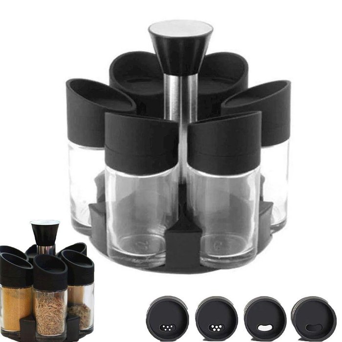 Porta Condimentos 6 Peças Temperos Suporte Giratorio Cozinha Casa Restaurante