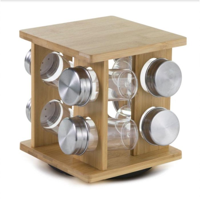 Porta Condimentos de Bambu Com Base Giratória
