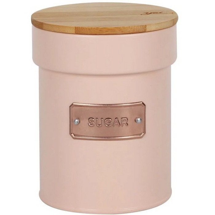 Pote para Acúcar Metal com Tampa Bambu 1L Lata Porta Condimentos Sugar Yoi Rosa.