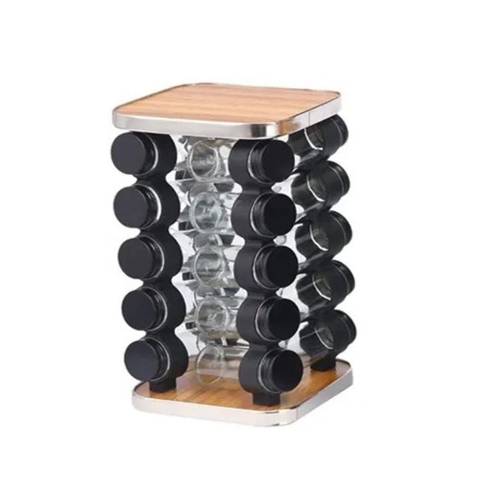 PORTA CONDIMENTOS TEMPERO SUPORTE GIRATORIO QUADRADO ORGANIZADOR COZINHA 20 POTES PREMIUM