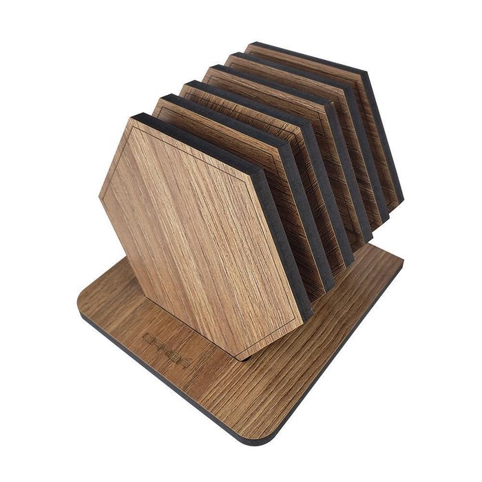 | Nome | Porta Copos Madeira Mesa Bar Cozinha Hexágono 6Un - Carvalho |
