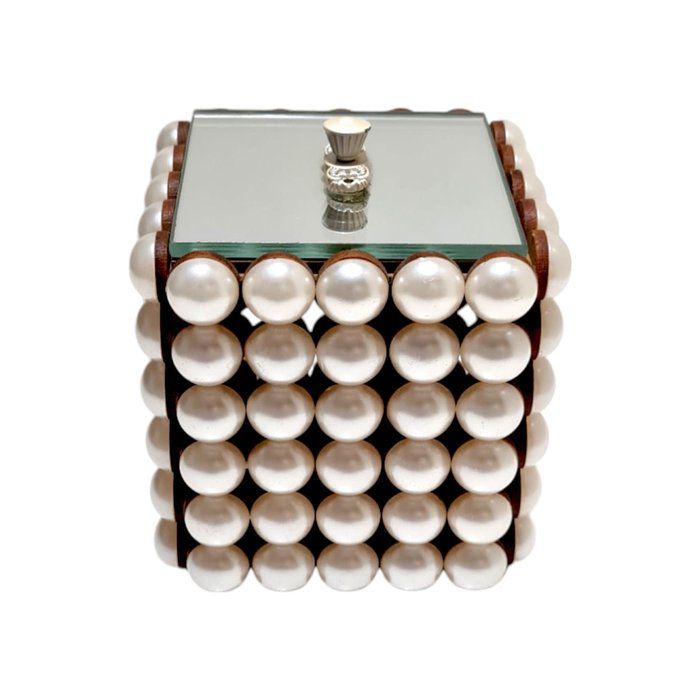 PORTA ALGODÃO E COTONETE COM PEROLAS TAMPA DE ESPELHO PARA BANHEIRO OU QUARTO DO BEBÊ